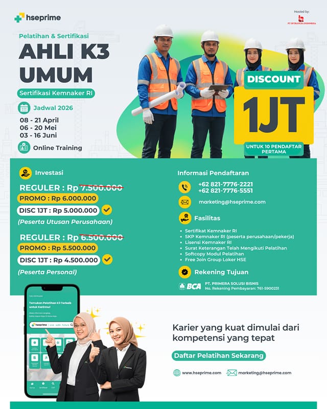 | Ahli K3 Umum Online | Kemnaker RI | 06 - 21 April 2026 | Daftar |