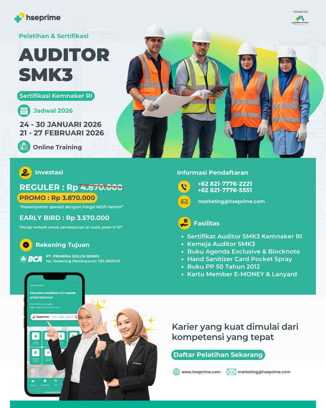 Dapatkan DISKON Pelatihan Auditor SMK3 sebesar IDR 1jt & PROMO EARLY BIRD