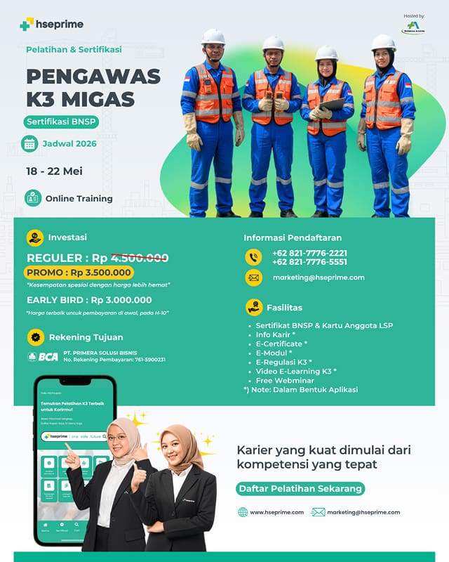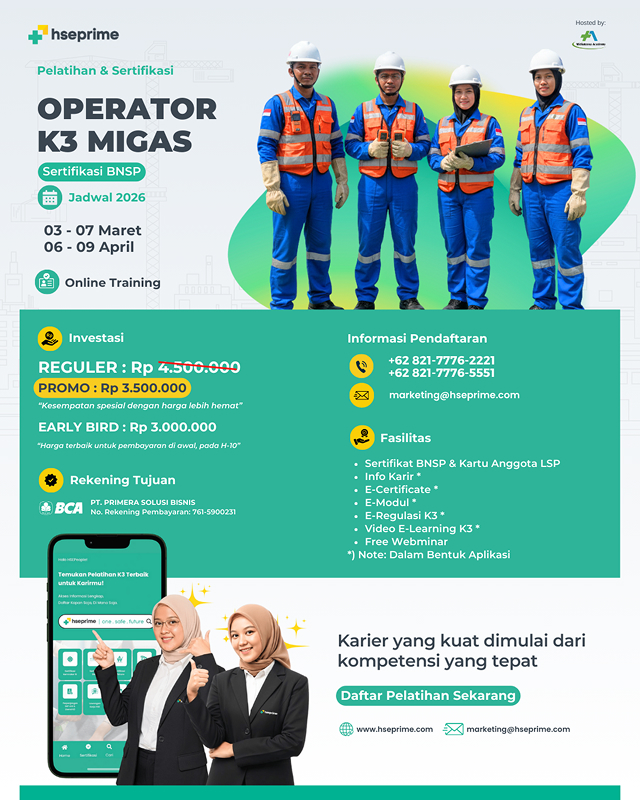 Dapatkan DISKON Pelatihan Operator K3 Migas sebesar IDR 1jt & PROMO EARLY BIRD