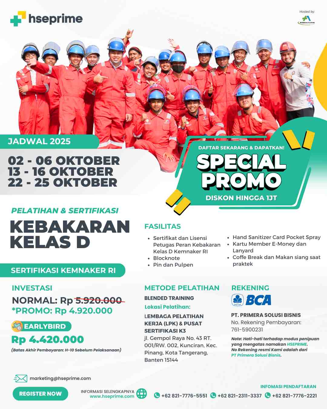 Dapatkan DISKON Pelatihan Kebakaran Kelas D Sebesar IDR 1jt & PROMO EARLY BIRD