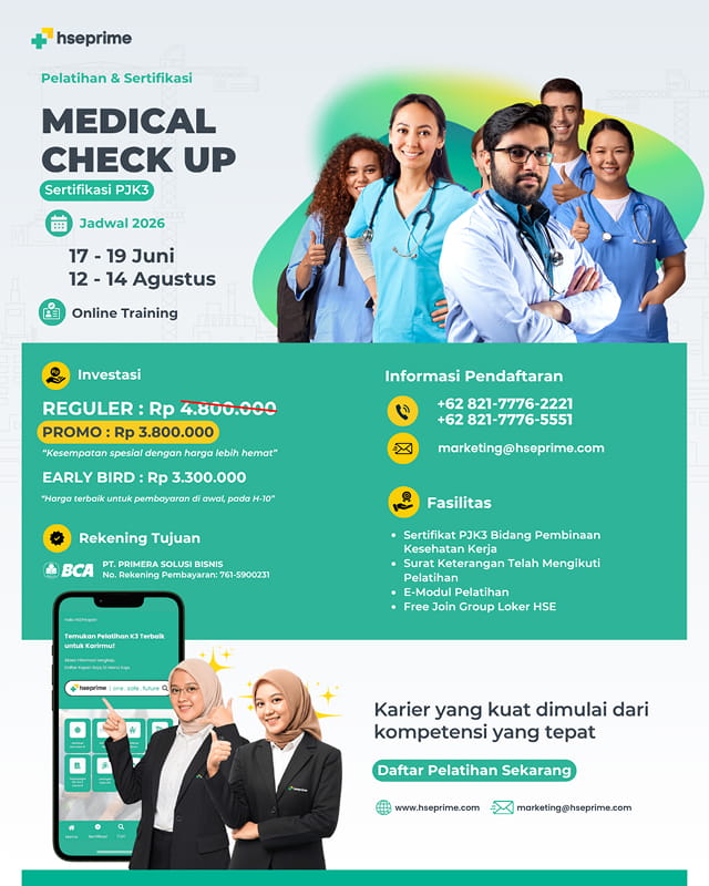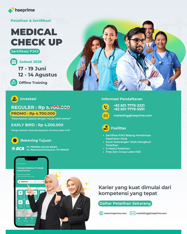 Dasar hukum pelatihan Medical Check Up (MCU) Fit to Work dengan sertifikasi dari Kementerian Ketenagakerjaan Republik Indonesia (Kemnaker RI) mengacu pada beberapa regulasi yang berkaitan dengan keselamatan dan kesehatan kerja (K3), pelatihan tenaga kerja, dan standar kompetensi. Berikut adalah dasar hukumnya:
