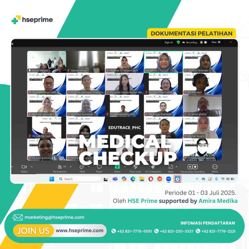 Pelatihan MCU – Medical check up adalah pemeriksaan kesehatan secara menyeluruh. Melalui pemeriksaan ini diharapkan suatu penyakit atau gangguan kesehatan bisa dideteksi sejak dini. Tes ini sekaligus berguna untuk merencanakan metode penanganan dan pengobatan yang tepat sebelum penyakit berkembang.