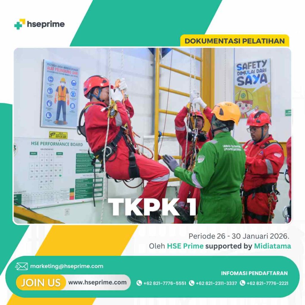 Sertifikat TKPK 1 – Bekerja pada ketinggian mempunyai potensi bahaya yang sangat besar. Ada berbagai macam metode kerja di ketinggian seperti diterapkan secara luas dalam pembangunan, pemeriksaan, perawatan bangunan dan instalasi industri seperti gedung tinggi, menara jaringan listrik, menara komunikasi, anjungan minyak, perawatan dan perbaikan kapal, perawatan jembatan, pertambangan, industri pariwisata seperti out bound, penelitian dan perawatan hutan dan lain sebagainya.